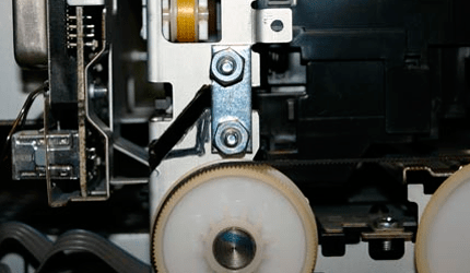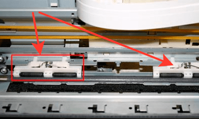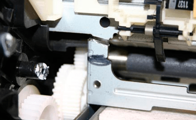 10.Чтобы краска не засохла на печатающей головке после использования принтера, необходимо вернуть на место механизм очистки дюз. Однако, из-за того, что платформа была поднята, механизм очистки тоже придется поднять. Например, так.
