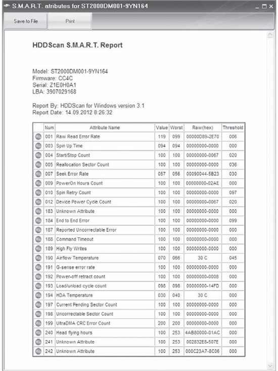 SMART-отчет можно распечатать или сохранить на диск.