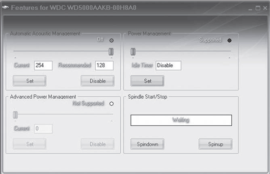 - управлять шумовыми характеристиками HDD;