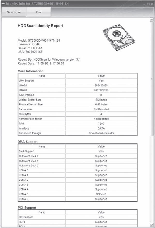 Рис. 3. Отображение паспорта HDD