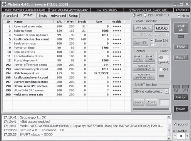 Рис. 7. Главное окно программы Victoria для ОС Windows