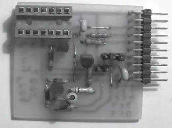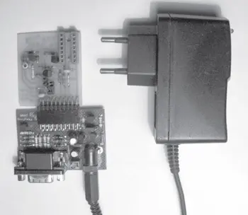 Следует отметить, что разъемы подключения адаптеров к базовым платам для разных версий программаторов PonyProg имеют отличия. На схеме рис. 1 обозначены номера выводов как классического разъема PonyProg от Claudio Lanconelli, так и разъема программатора от [5], которым пользуется автор статьи. Адаптер микроконтроллеров PIC16F630/676/684/688 для такого программатора собран на односторонней печатной плате размером 43x38 мм. Внешний вид этого адаптера показан на рис. 2, а комплект, состоящий из базовой платы PonyProg от FLYCONT, ИБП и самодельного адаптера микроконтроллеров PIC16F630/676/684/688 - на рис. 3.