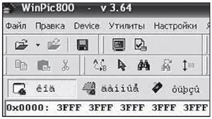 Запускают дистрибутив, в открывшемся окне установщика появится окно инсталляции с одним пунктом "Выбор языка установки" ("Choose a setup language"), в котором выбирают русский язык ("Russian") и щелкают мышкой по кнопке "Далее" ("Next"). Далее надо установить программу, следуя подсказкам установщика. По умолчанию программа устанавливается в папку C:Program FilesWinPic800. После установки следует запустить файл WinPic800.exe из этой папки. При этом, как правило, открывается русскоязычное окно программатора WinPic800 v3.64. Если же откроется англоязычное окно WinPic800 v3.64, то любой другой язык можно выбрать через меню "Language". При выборе русского языка может возникнуть проблема. Дело в том, что в большинстве случаев (но не всегда) ряд надписей кириллицей в этой программе будет отображаться нечитаемыми символами (см. рис. 6 и рис. 7).