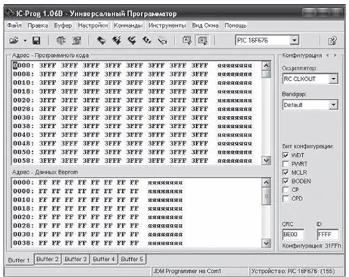 Рис. 4. Вкладка "Программирование" программы IC-Prog