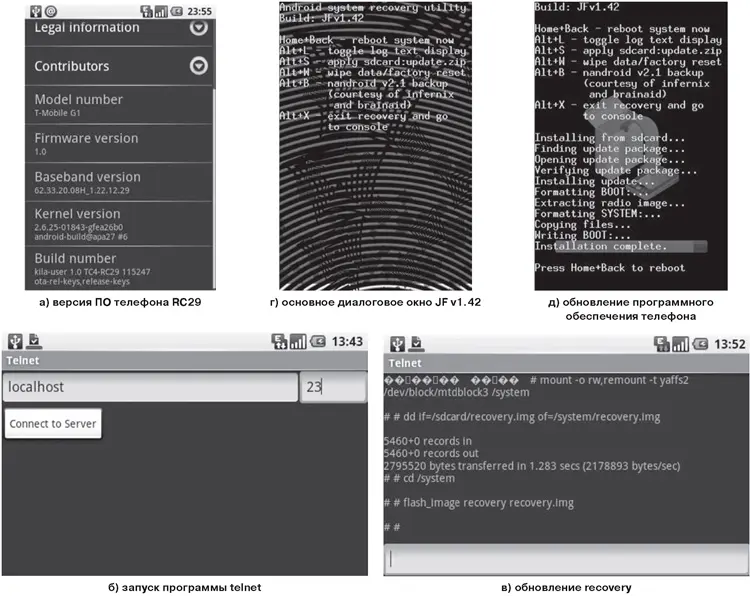 Следующим этапом является обновление встроенной в телефон микропрограммы обновления/восстановления ПО (recovery), при этом для "HTC G1" рекомендуется устанавливать версию JF v1.42, в которую встроена утилита nandroid, позволяющая создать резервную копию текущего ПО телефона. Обновление recovery осуществляется следующим образом:
