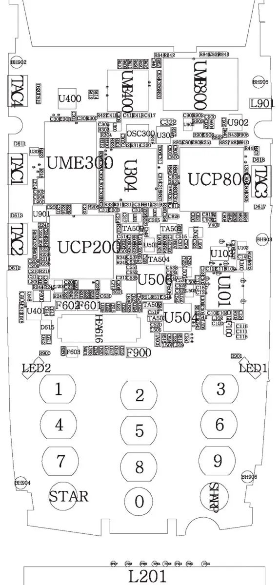 Переходят к рассмотрению проблем, возникающих при инициализации включения телефона. Эти проблемы связаны с возможной неисправностью процессора UCP200 .