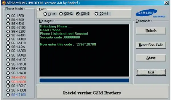 Рис. 4. Основное диалоговое окно All Samsung Unlocker