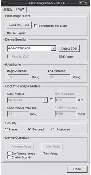 Вышеприведенный список поддерживаемых МК этим не ограничивается (в серию HSC08 входит более 100 типов МК), программатор поддерживает и другие МК серии HSC08.