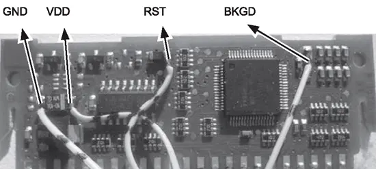 Рис. 8. Точки подключения BDM-программатора к МК MC9S08AW60