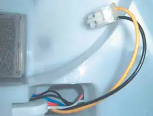 Для детальной проверки ТЭН необходимо снять крышку испарителя, после чего можно получить доступ к соединителям нагревателя испарителя и температурных датчиков (см. рис. 5). На рис. 6 показан внешний вид соединителя ТЭН крышки испарителя.