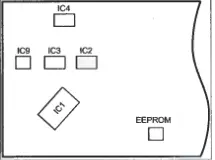 - ЭСППЗУ (EEPROM) типа 93С46 (рис. 5). Микросхема имеет организацию 64x16 бит, выполнена в корпусе SOIC-8 и обменивается данными с микропроцессором по 4-проводной последовательной шине. Микросхема памяти служит для хранения различных служебных данных(например,зафиксированных кодов ошибок или промежуточных данных о выполнении операций выбранной программы стирки), поэтому при ее возможной замене можно установить новую ЭСППЗУ без прошивки (с кодами FF).