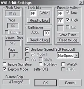 8. Группы "Lock bits", "Calibration"не требуют комментариев. Программа сохраняет значения, чтобы их не ставить при запуске каждый раз.