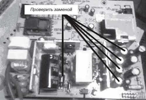 После восстановления и включения ИБП появляется подсветка и изображение, а через несколько секунд сильно нагреваются транзисторы и перегорает предохранитель F2. С помощью внешнего инвертора от ТВ были проверены все четыре лампы.